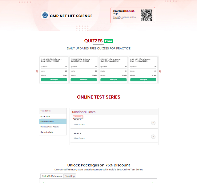 The CSIR NET Life Sciences Mock Papers by Likh Padh App also have Sectional Mock Tests, CSIR NET Life Science PYQ and Question Paper, Full Length CSIR NET Mock Papers and more.